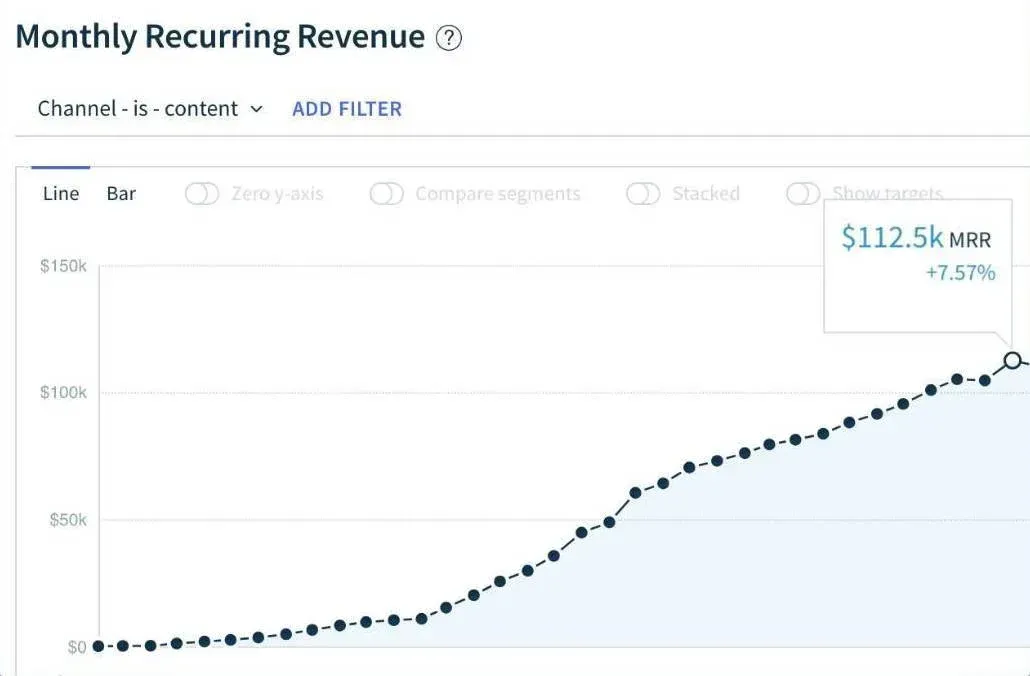 Monthly recurring revenue from the "content" channel was repeatable and predictable (compounding like interest over time):