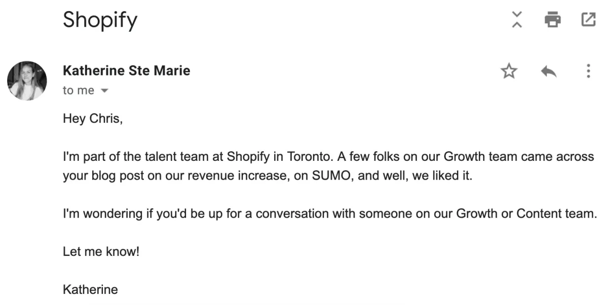 Companies like Shopify, HubSpot, and Drift also wanted to scale really fast using my strategy. So they hit me up as well: